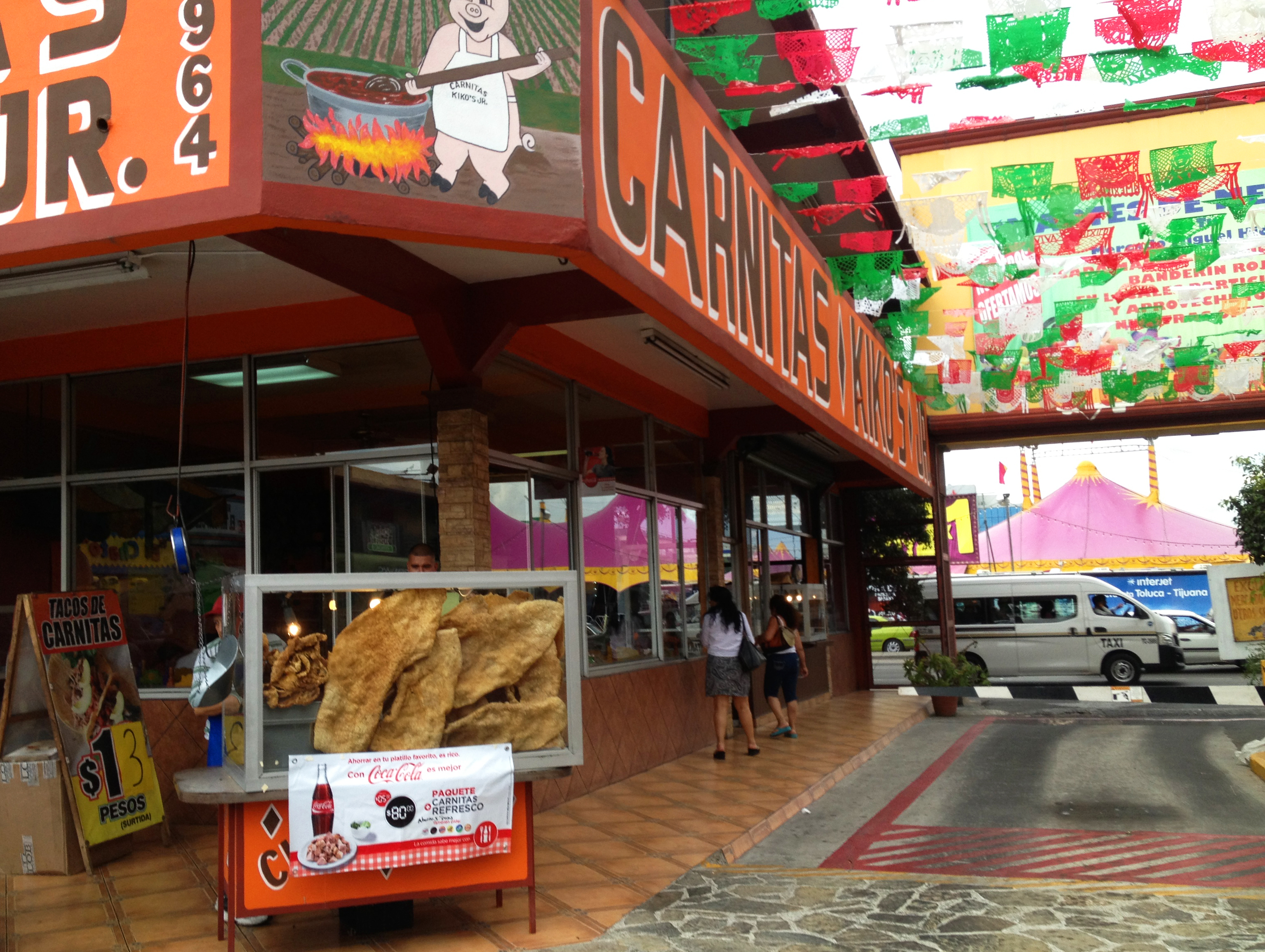 If you’re looking for an authentic shopping and eating experience in Baja, you don’t have to head too far south of the border to find where the locals go. Mercado Hidalgo in Tijuana is a sensory overload in the best kind of way. The market is teeming with stands of fresh produce that you can’t find in the U.S., dulcerias, men with machetes opening fresh coconuts to drink, and food carts selling chicharrón and tacos. ¡Disfrútate!