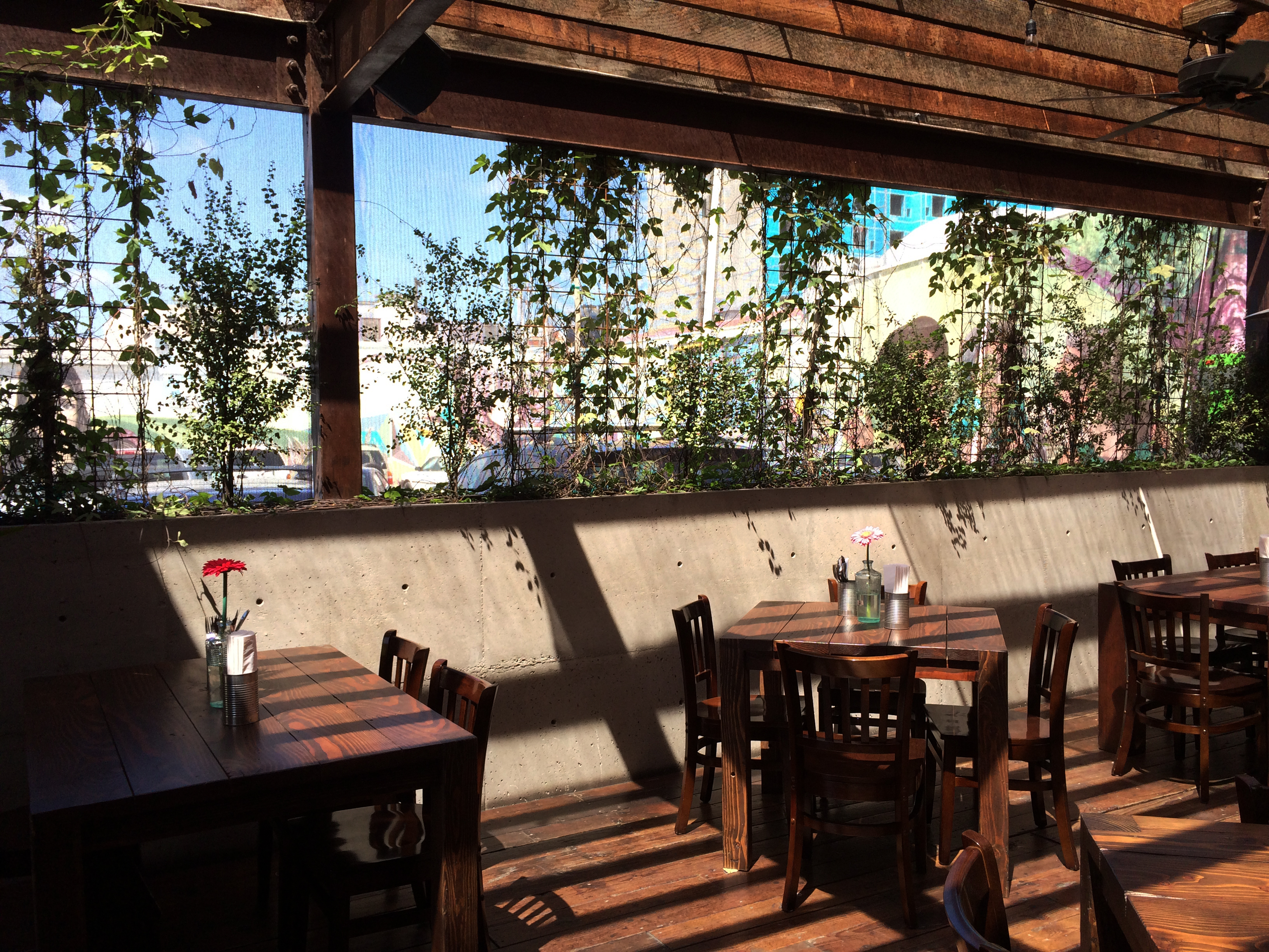 The restaurant is light and airy with rays of sunlight pouring through the mostly open roof and large windows. Reclaimed wood and corrugated tin give the space a simple but chic setting. It’s the kind of place where you want to while away the afternoon with a group of friends, noshing on delicious small plates and enjoying a bottle (or two) of wine.