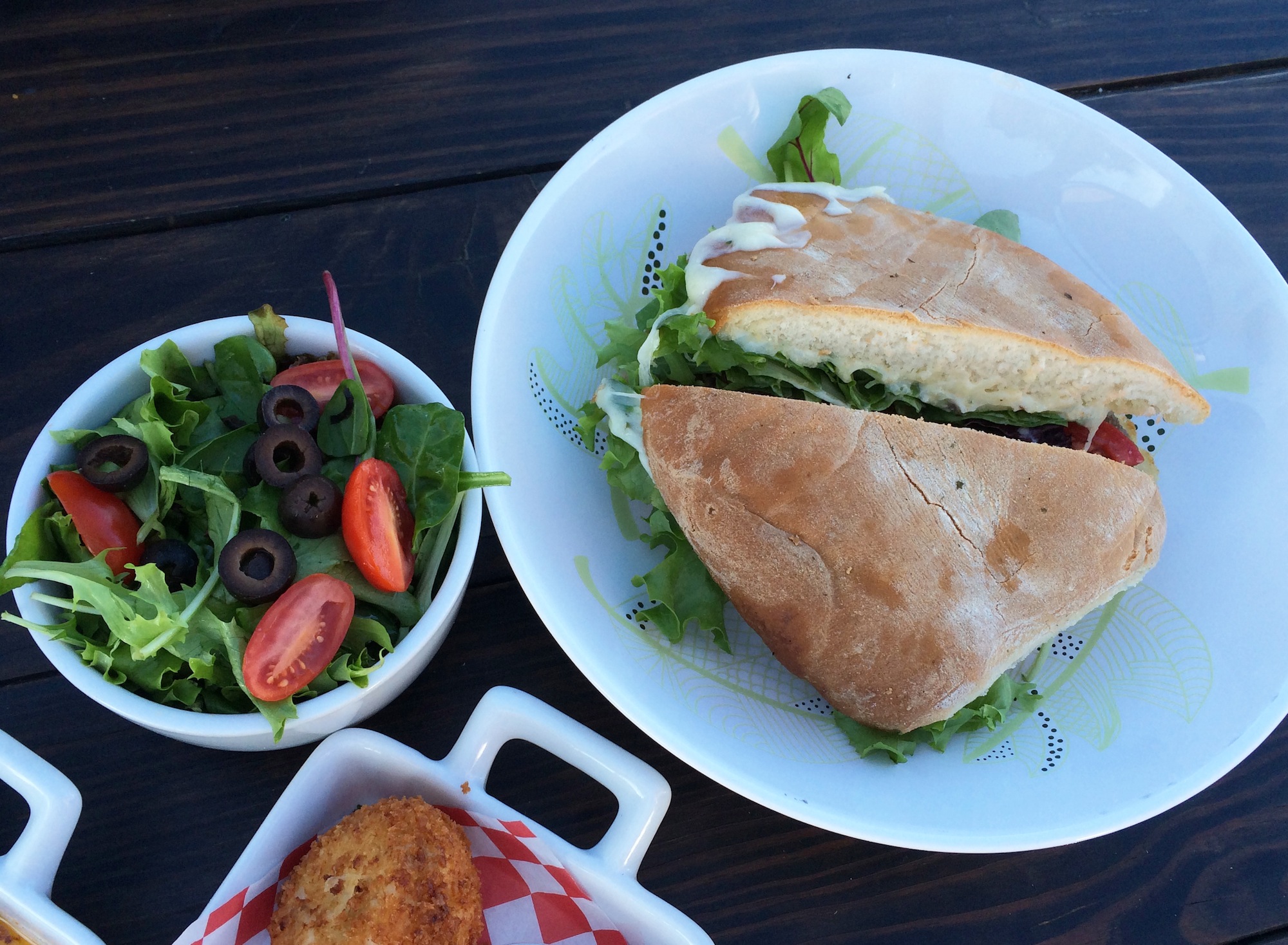 While there are some eateries in the Valle de Guadalupe that manage to get by with mediocre food (relying on the beautiful setting and wine to make it a complete experience), that was luckily not the case with Adobe Food Truck. Everything that we ordered was exceptionally delicious – patatas bravas, champignones (mushrooms), croquettes and a ribeye sandwich with a side salad. It was all fresh, flavorful and filling. We washed it all down with some smooth Tempranillo and crisp Sauvignon Blanc.